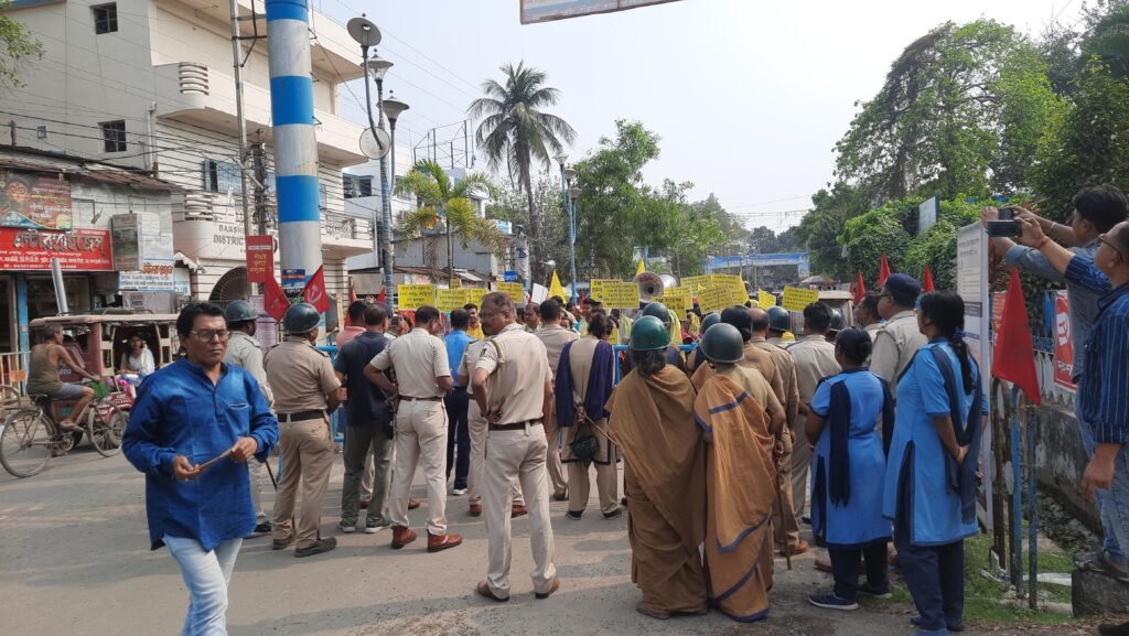 নিজস্ব সংবাদদাতা, ১২ মার্চ, বালুরঘাট :দক্ষিণ দিনাজপুর জেলায় রাজ্য সরকারের উদ্যোগে চালু হওয়া রাজবংশী ভাষার স্কুলগুলিকে ঘিরে ফের অসন্তোষের সুর শোনা গেল। শিক্ষক নিয়োগ ও দীর্ঘদিন ধরে বেতন বন্ধ থাকার অভিযোগ তুলে বৃহস্পতিবার দুপুরে বালুরঘাটে জেলাশাসকের দফতরের সামনে শান্তিপূর্ণ অবস্থান-বিক্ষোভে সামিল হলেন GCPA-র সমর্থকেরা। সংগঠনের অভিযোগ, জেলায় মোট ১৬টি রাজবংশী ভাষার স্কুল চালু হলেও তার মধ্যে এখনও চারটিতে কোনও শিক্ষক-শিক্ষিকা নিয়োগ করা হয়নি। বাকি ১২টি স্কুলে প্রায় ৪৩ জন শিক্ষক-শিক্ষিকা কর্মরত থাকলেও গত পাঁচ মাস ধরে তাঁদের বেতন বন্ধ রয়েছে।